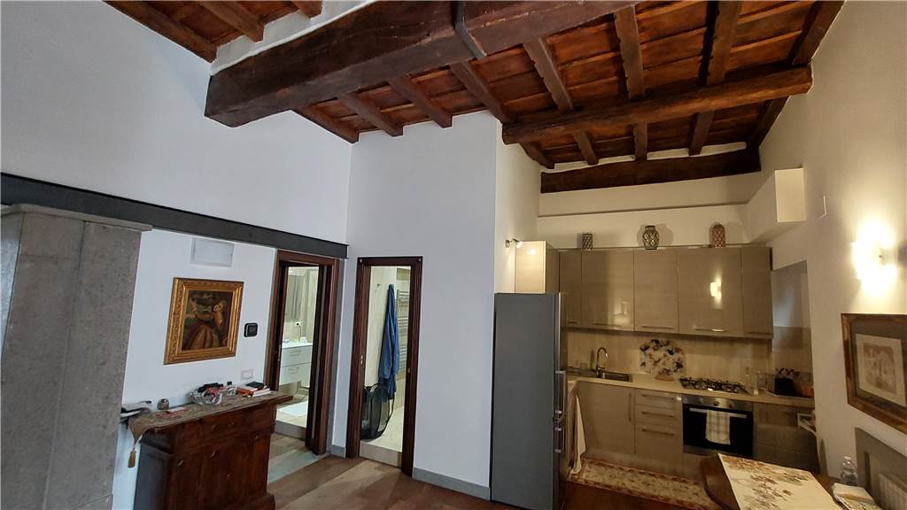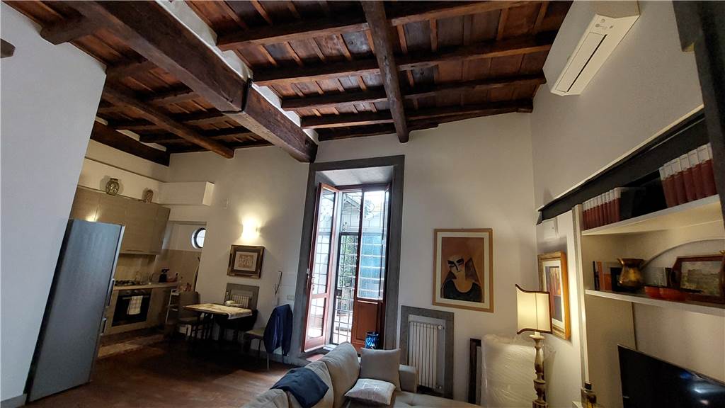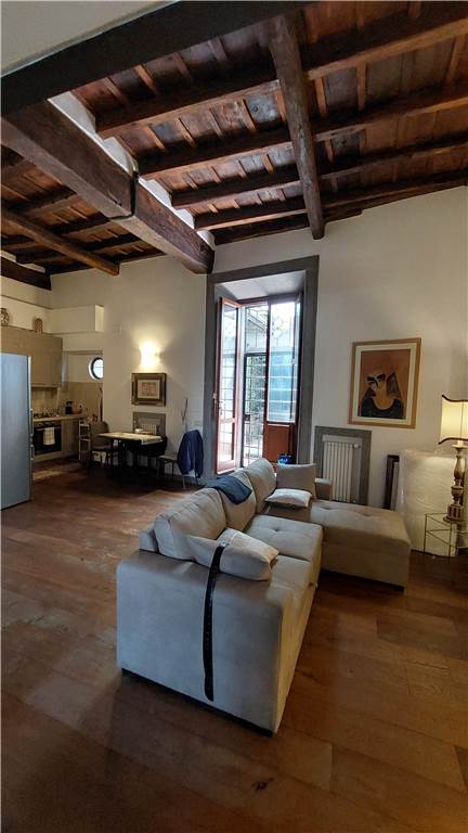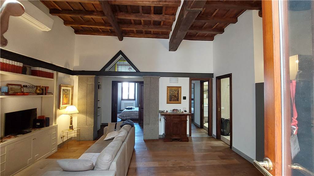 appartamento di charme con soffitti impreziositi con travi originali di legno a vista