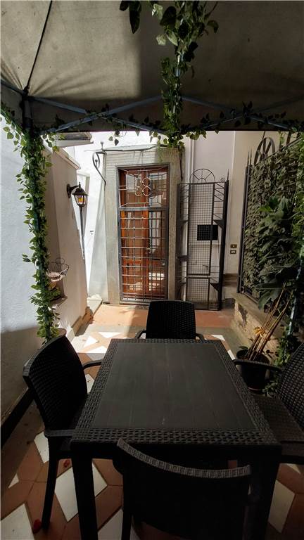 Completa la proprietà uno spazio esterno arredato con tavolo, sedie ed ombrellone